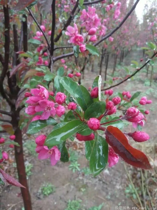 紅寶石海棠是北美海棠眾多品種之一,它因其顏色鮮美,品種珍貴而得名,這個(gè)名字也表現(xiàn)了它深受人們的喜愛。海棠在早春重要的觀賞花卉之一,它開花量大花期持久,樹姿優(yōu)美,含苞待放的時(shí)候花蕾紅艷,就像胭脂一樣紅暈動(dòng)人。待盛開之時(shí),滿樹的花朵爭(zhēng)相開放,仿佛要比個(gè)高低,枝椏燦爛。我們基地種植了多樣的海棠,種類繁多,隨時(shí)歡迎您來(lái)我們基地觀賞海棠的風(fēng)采!
