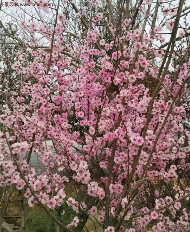 是公園綠化中經常用的園林花卉,其長勢優良,株型漂亮,觀看價值非常好。美人梅每年的初春1月上旬~2月中旬這個時段花開,但各地氣候環境不相同,因此花開時候也有所差異。我國江南的美人梅花基本上聚中春節期間開,而北方氣候較冷,大多數都在2月中旬~3月下旬期間花開,形狀各不相同,花瓣的色調也受到氣候環境和泥土環境的一點影響,而有所不同。