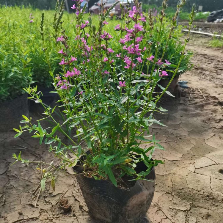 千屈菜又叫水枝柳、水柳、對葉蓮等,多年水生宿根草本植物,植株高約1米,直立生長,主桿上有許多分枝,葉子對生,披針形。葉子長4~6cm,寬1cm左右。總狀花絮長在最上面,長約30cm,花朵簇生。喜歡溫暖濕潤陽光充足的環境,在我國南方和北方地區都有野生的,生長在沼澤、湖畔、池塘等淺水地區。它耐寒性強,在山東、河南、北京等地均可自然越冬,霜降以后地面部分枯死,地下部分進入泥土休眠,在淺水的河邊和低洼潮濕的地方生長態勢最好,對土壤的要求不嚴。千屈菜的生命力極強,管理也可粗放,栽培的環境只要保證光照充足、通風良好即可,在生長期要經常打頂促使其矮化分蘗,長出豐滿茂密的株型。
